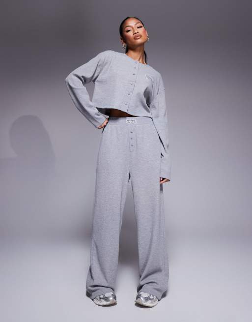 Weekend Collective waffle button top with nylon patch and wide leg trackies set in grey
