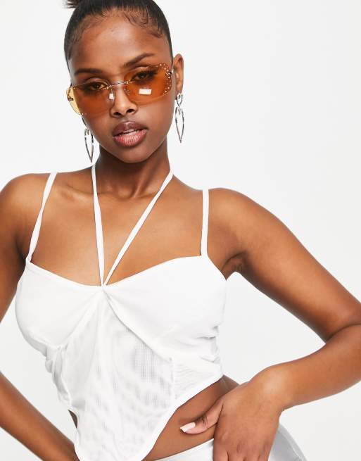 ASYOU mesh corset top with halter tie in white