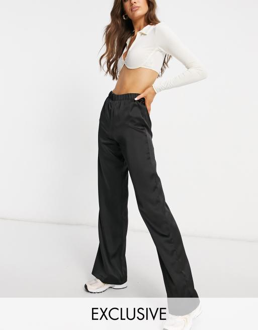 ASYOU satin wide leg pants in black