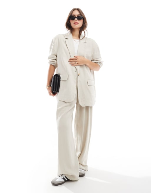 Vero Moda Aware oversized tailored blazer and pleated pants set in stone