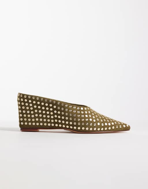 Azalea Wang Neiza wedge mules with studs in olive