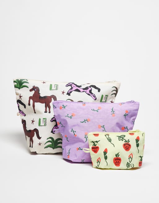 Baggu Go Pouch 3 pack set in painted prairie print