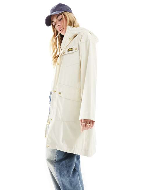 Barbour International showerproof long jacket in ivory