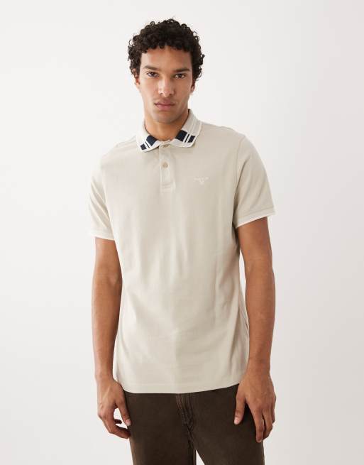 Barbour Callington short sleeve tailored fit polo shirt with tartan collar in beige