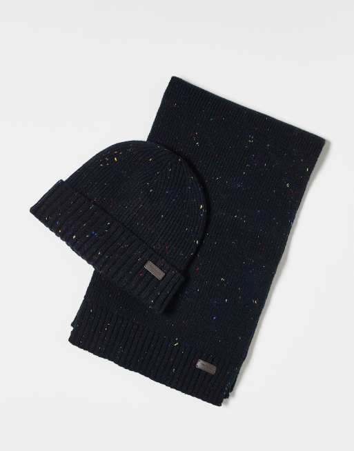 Barbour Carlton fleck beanie & scarf gift set in navy
