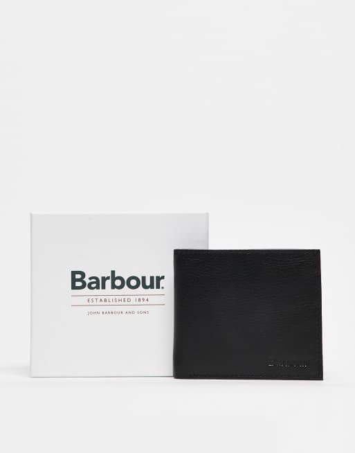 Barbour Colwell leather billfold wallet in black/classic