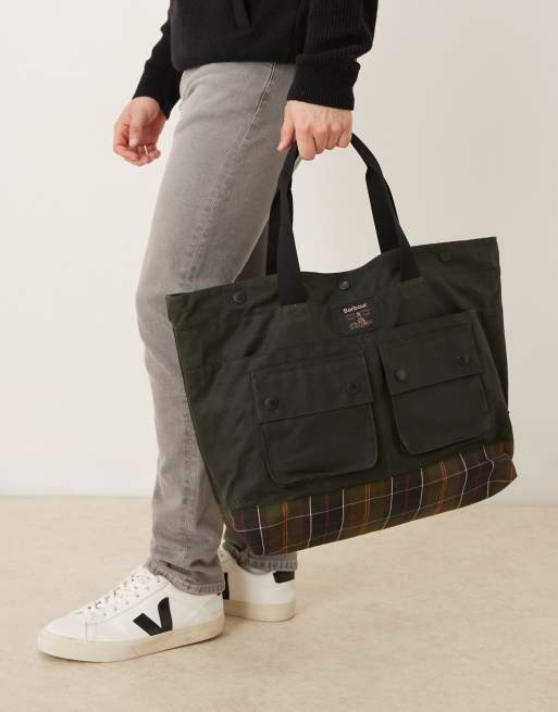 Barbour Field wax tote bag in sage/classic