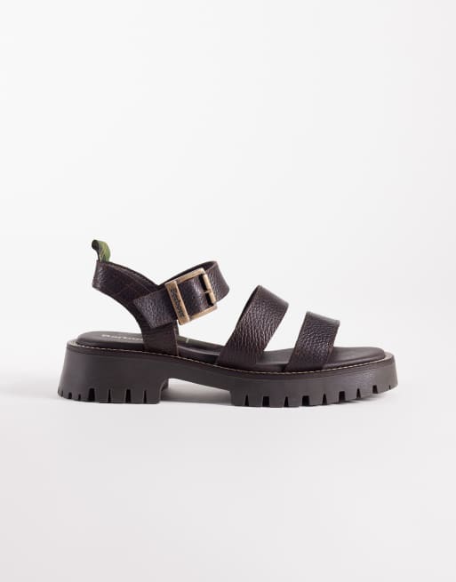 Barbour Gabby leather chunky strap sandals in brown