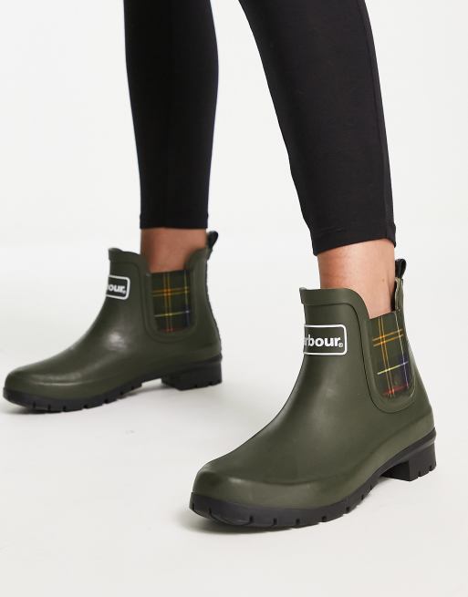 Barbour Kingham ankle gumboots with tartan lining in olive