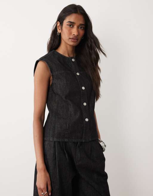 Barbour Myra relaxed overdyed denim sleeveless shirt in black