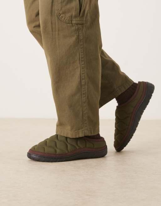 Barbour Outdale slippers in olive green/brown