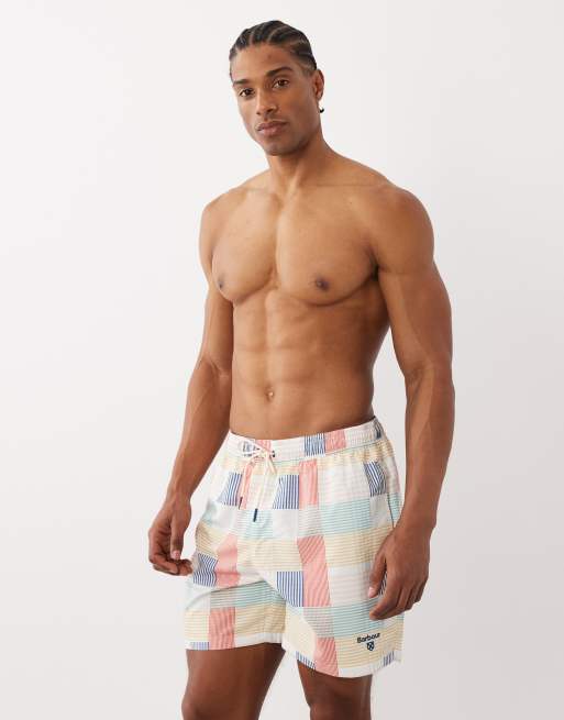 Barbour Patch tartan check logo swim shorts in multi