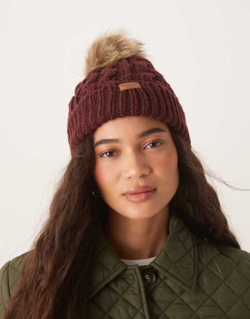 Barbour Penshaw beanie hat in bordeaux burgundy