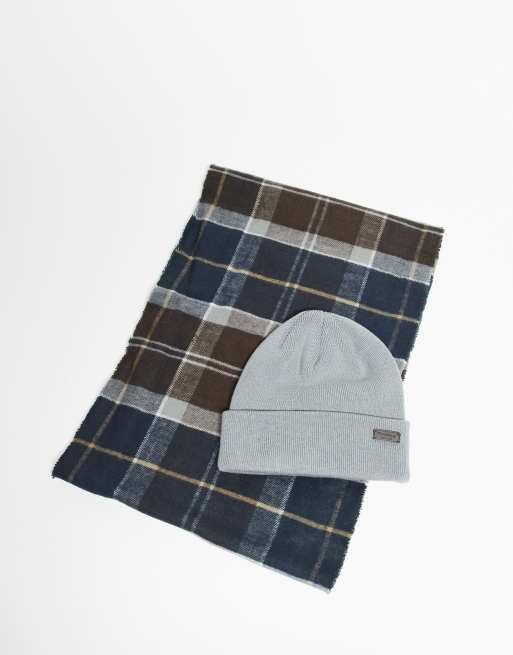 Barbour Swinton beanie & Galingale scarf gift set in midnight oak