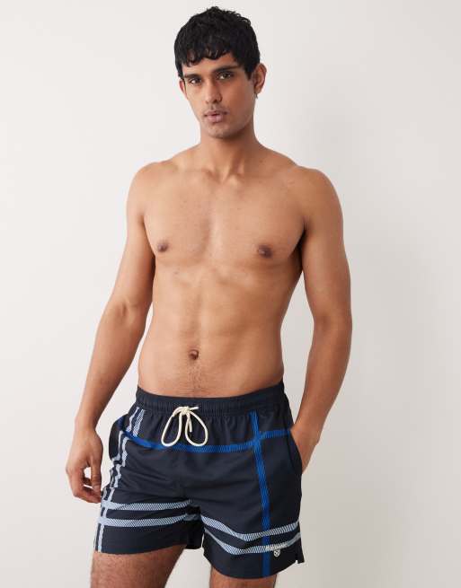 Barbour Twain tartan check logo swim shorts in navy