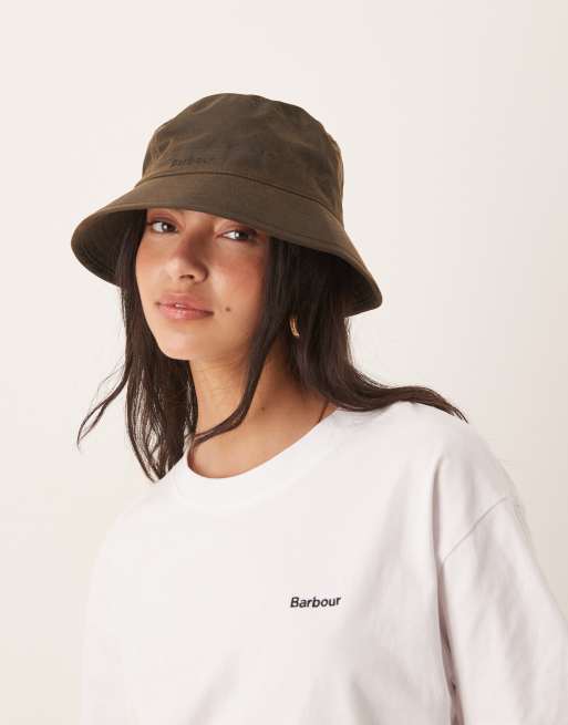 Barbour waxed fabric bucket hat in olive