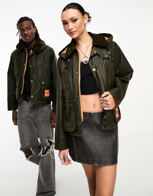 Barbour x ASOS exclusive unisex wax jacket with hood in olive