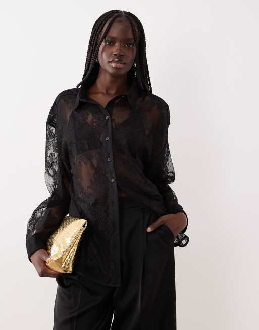 Bardot Aleida oversized lace shirt in black (part of a set)