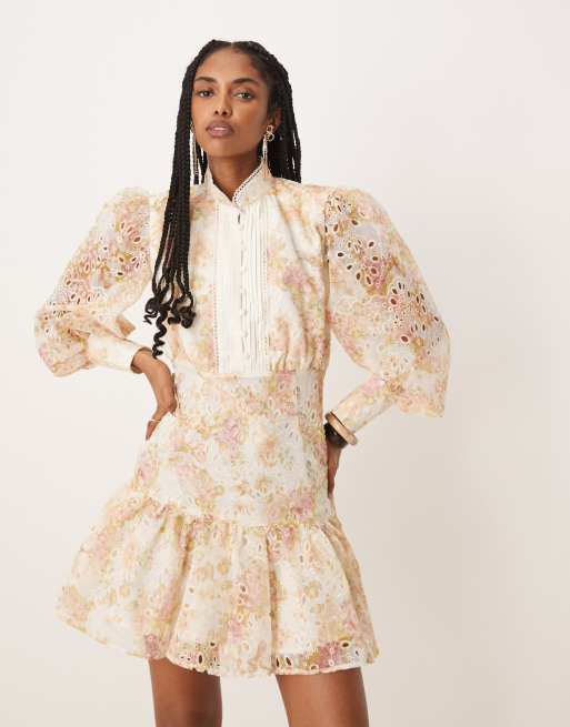 Bardot Remy mini broderie dress in apricot floral