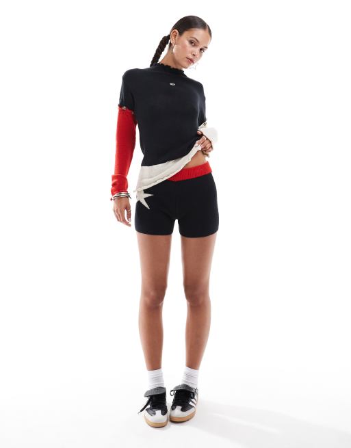 Basic Pleasure Mode Liquorice knitted micro shorts in multi (part of a set)