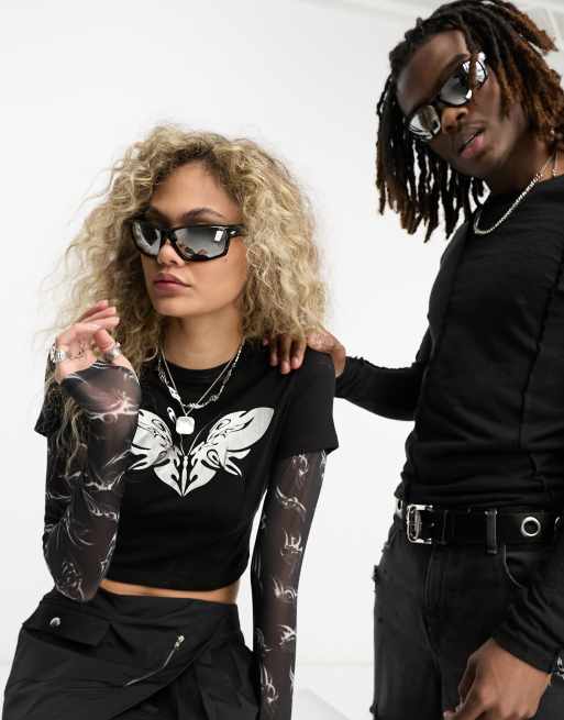 Basic Pleasure Mode wraparound visor sunglasses in black with mirror lens