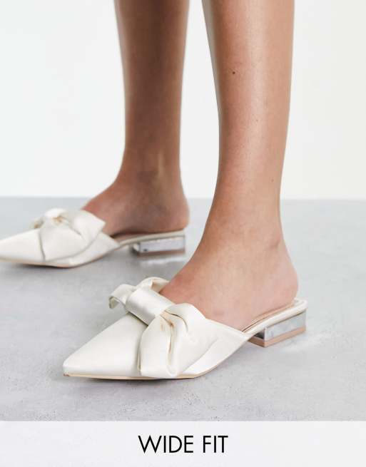 Be Mine Wide Fit Bridal Alezae bow front backless slippers in ivory