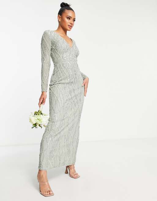 Beauut Bridesmaid allover embellished maxi dress in light sage