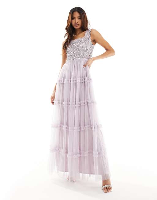 Beauut Bridesmaid embellished maxi square neck dress with ruffle skirt in lilac