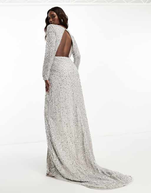 Beauut embellished wrap maxi dress with long sleeve in grey