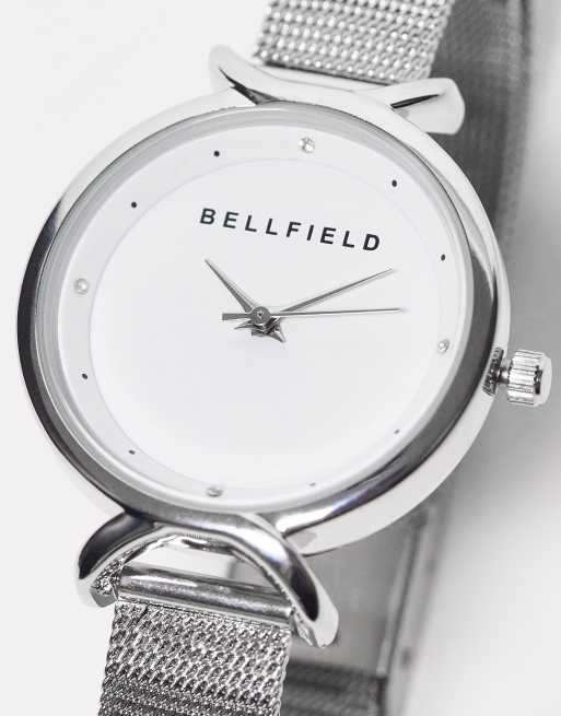 Bellfield mesh strap watch with twist detail dial in silver
