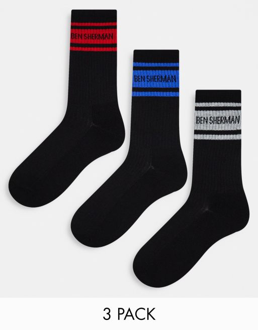 Ben Sherman Comet 3 pack sports socks in black red and blue