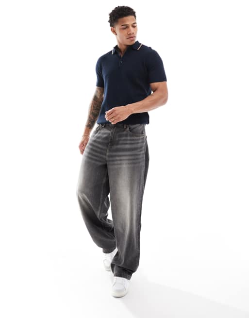 Ben Sherman short sleeve textured polo in dark navy