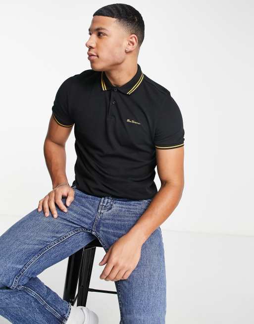 Ben Sherman tipped polo in black