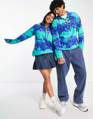Berghaus Dean Street unisex Prism Trango 1/2 zip fleece in blue digital mountain print