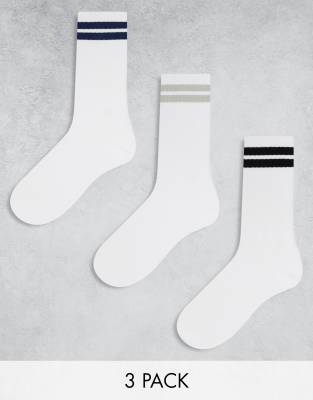Bershka 3 pack coloured stripe socks in white