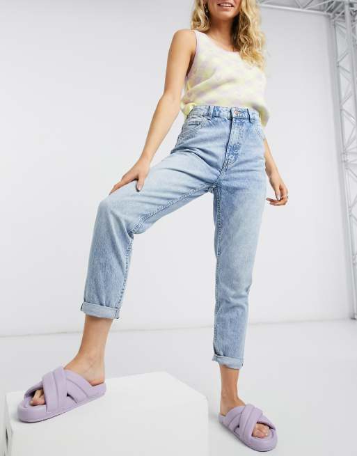 Bershka cotton mom jeans in light blue - BLACK