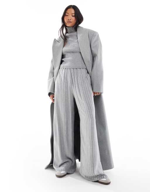 Bershka Petite drawstring waist wide leg pants in grey