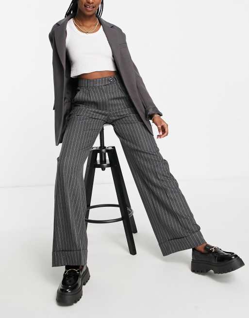 Bershka pinstripe maxi wide leg pants in grey