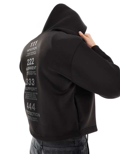 Bershka tonal print tech zip through hoodie in black