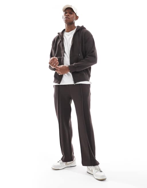 Bershka wide leg pintuck trackies in brown