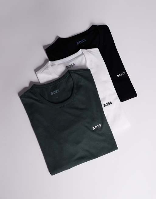 BOSS Bodywear Classic 3 pack of logo t-shirts in regular fit in black, white and grey