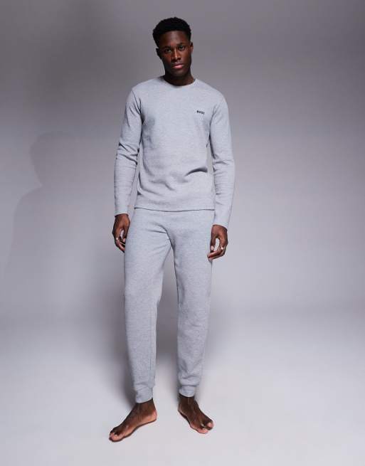 BOSS Bodywear waffle logo cuffed trackies in grey (part of a set)