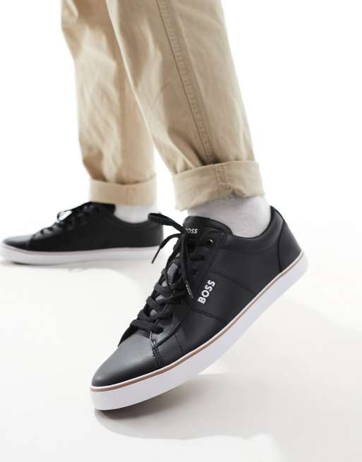 BOSS Jodie leather court sneakers in black