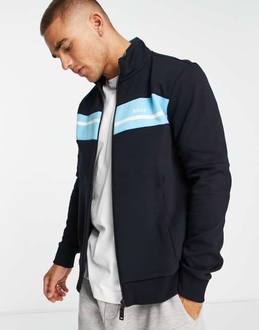 Boss Athleisure Skaz contrast panel zip-through track jacket in black