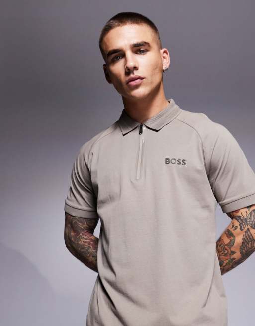 BOSS Green Philix mirror polo shirt in grey