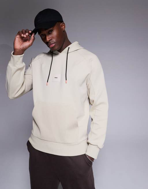 BOSS Green Soody Rib central box logo hoodie in beige