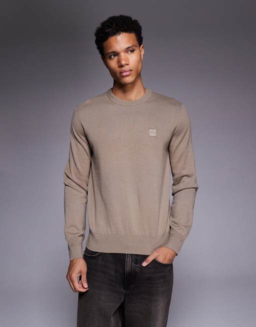 BOSS Orange Kanovano tonal logo fine knit regular fit jumper in dark beige