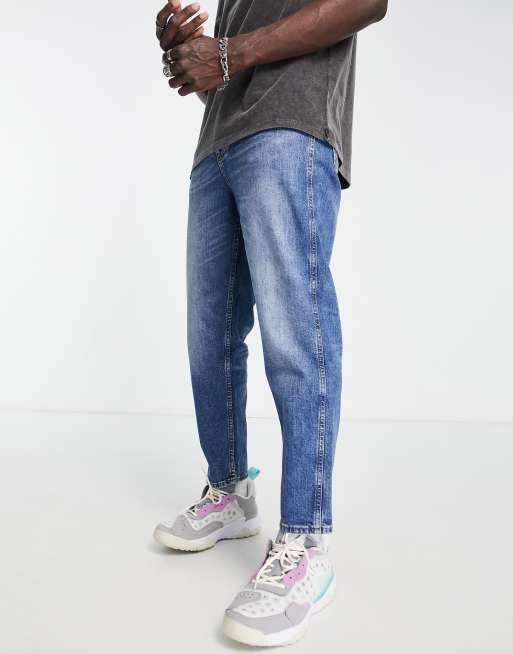 BOSS Orange Tatum tapered cropped jeans in mid wash