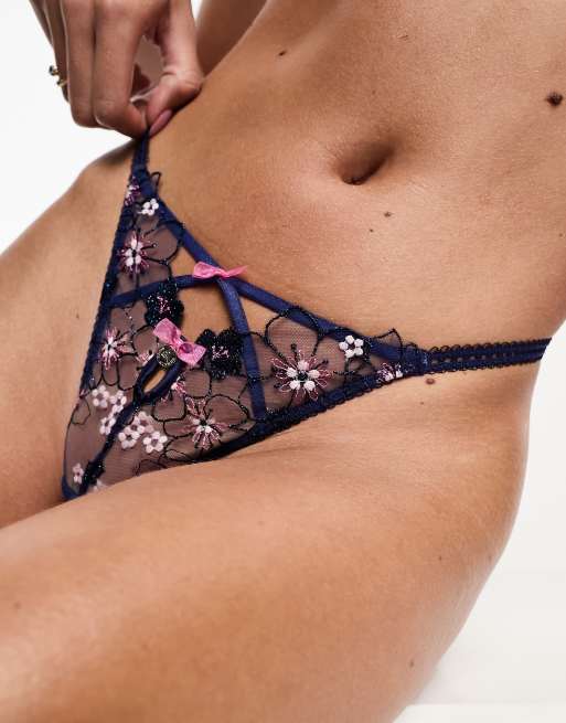 Boux Avenue Karina flower thong in navy