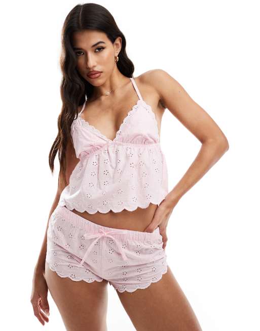 Boux Avenue scallop embroidery cami and shorts pyjama set in pink